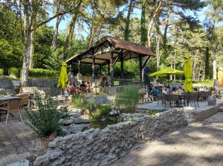 Bij mooi weer geeft het terras alle rust om even na te praten na één van de Kokima activiteiten.